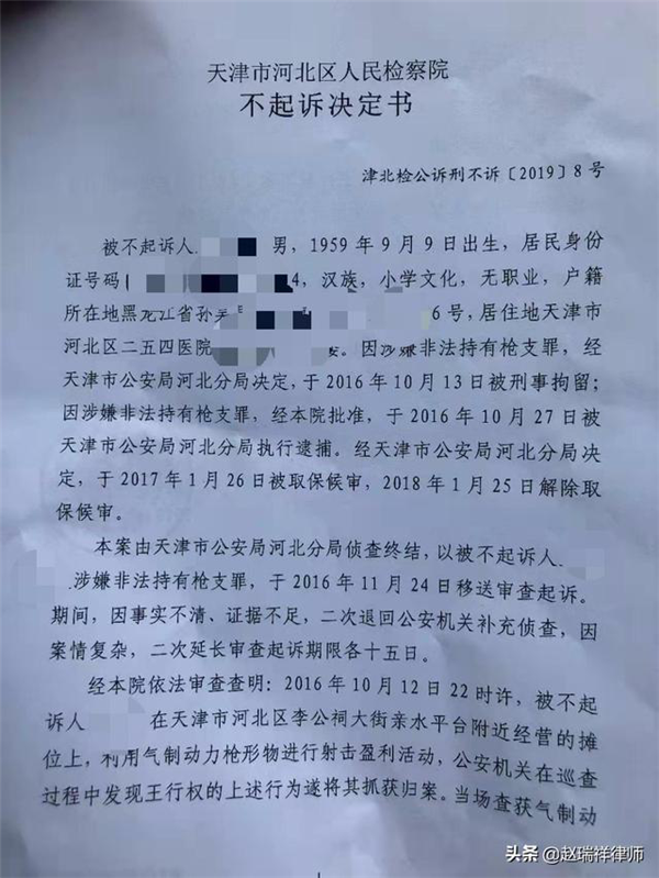 3、北京刑事辩护律师赵瑞祥辩护天津摆摊老太太非法持枪系列案。